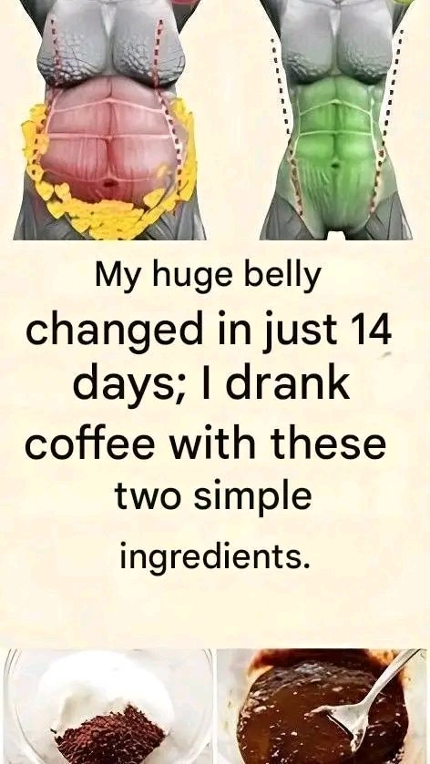 The viral claim suggests that mixing coffee with two everyday ingredients can shrink a large belly in just 14 days. The ingredients shown are coffee and cocoa powder (mixed with milk or cream).